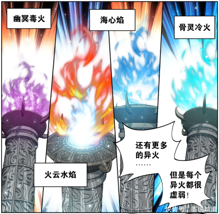 异火广场在陀舍古帝洞府里面,本来是萧炎一瞥东谈主扈从虚无吞炎才发现这地点。漫画版中,改成小伊感知到此地的位置,带着萧炎、古元等东谈主来到这里。从情况来看,此地有20种异火。那么皆是哪些异火?