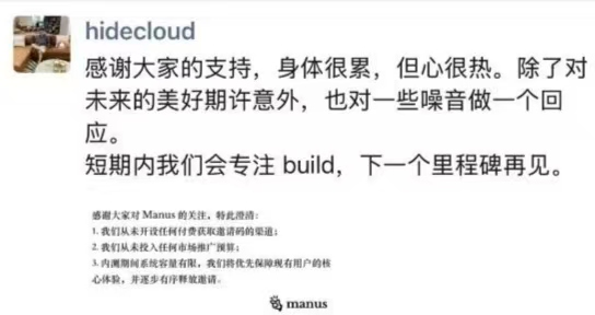 对此,Manus AI结伴东谈认识涛在酬酢平台复兴称,短期内会专注build,并暗意,感谢公共对 Manus的蔼然,特此瓦解:1、咱们从未开设任何付费取得邀请码的渠谈;2、咱们从未参加任何市集推论预算;3、内测时辰系统容量有限,咱们将优先保险现存用户的中枢体验,并逐步有序开释邀请。