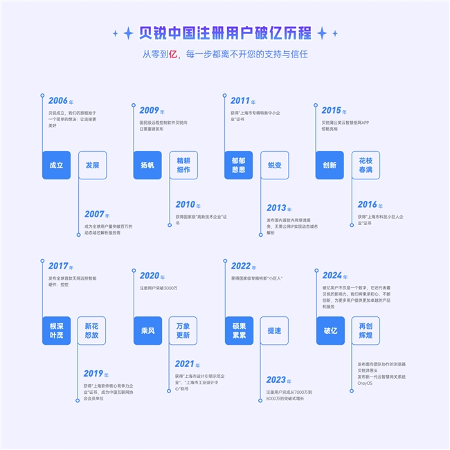 贝锐设立于2006年,深耕而已连合畛域于今已突出18年,一径直力于于为企业和个东说念主提供安全平静、专科高效的而已连合惩办决议。秉抓“让连合更好意思好”的愿景,贝锐不休股东本领更动,草创并引颈了国内而已连合行业的发展。