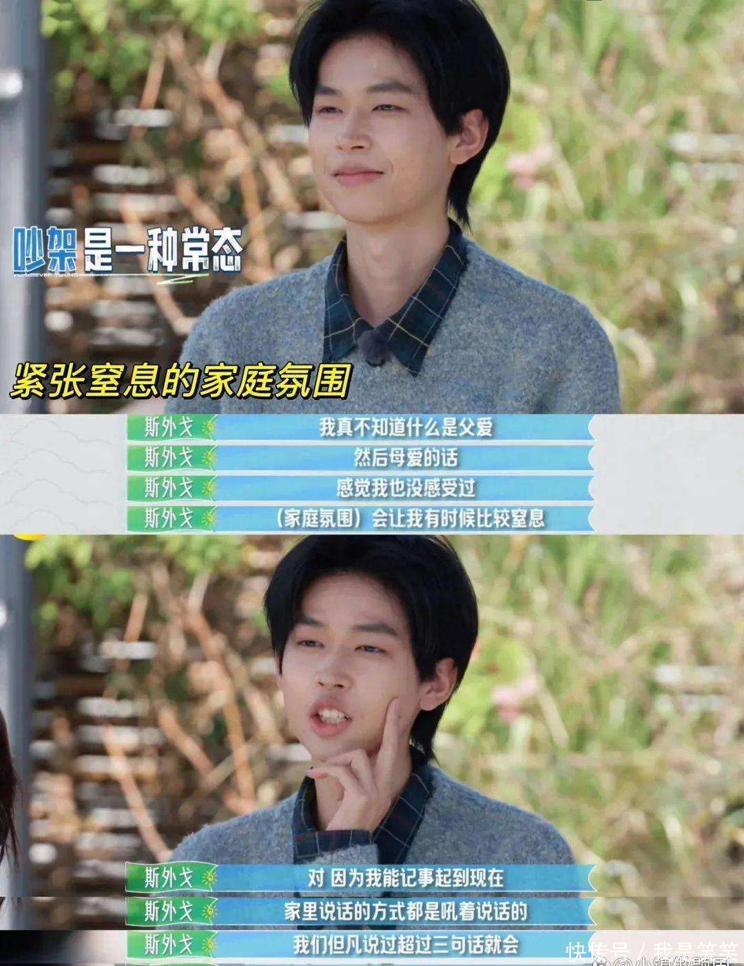 吴克群追念小斯的激情,晚上还挑升跑去找他聊天,共享我方和爸妈的故事。他说,我方和姆妈之间、爸爸和姆妈之间也常常吵架,直到姆妈离世,看到姆妈把我方给她的钱沿途留着,看到爸爸第一次悲泣流涕,才知说念互相深爱着对方,只是不知说念奈何抒发。“第一次作念父母的他们,第一次作念儿女的咱们,齐需要贬抑学习。”