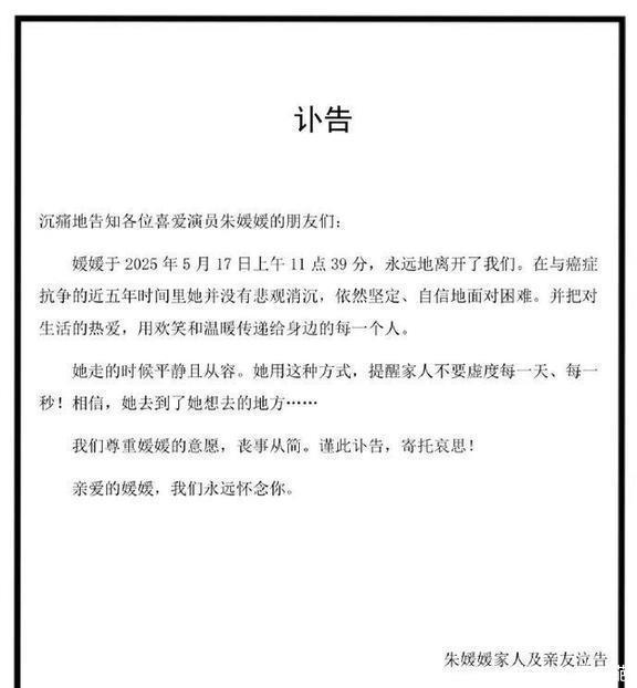 2025年5月,朱媛媛的体魄眨眼间不争光,临了没能扛过这场病痛的折腾。