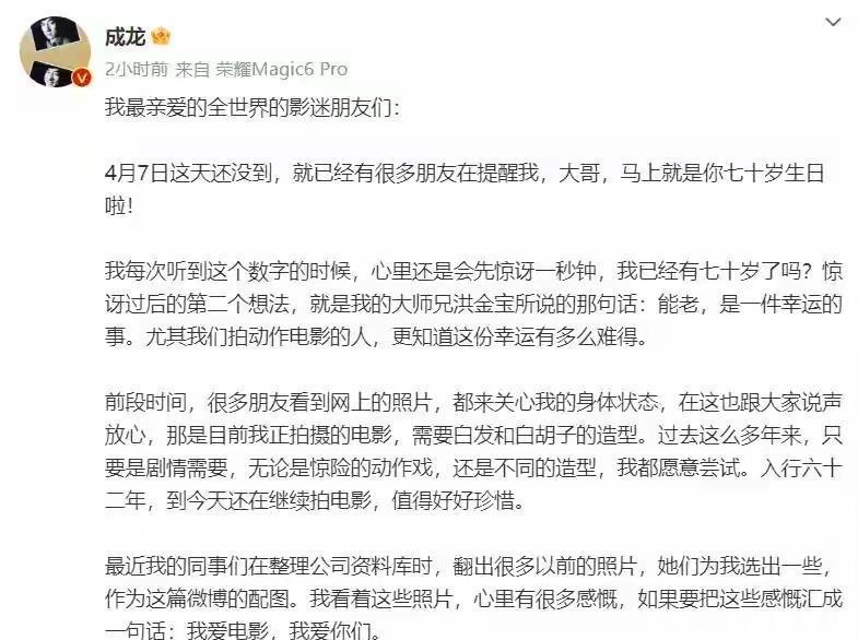这并非是第一次对于成龙“升天”的妄语传播。自2015年以来,每隔几年齐会有访佛的情况出现。关联词弗成否定的是,无论是算作戏照旧精深生活里的个东说念主格合资影响力齐深植东说念主心。