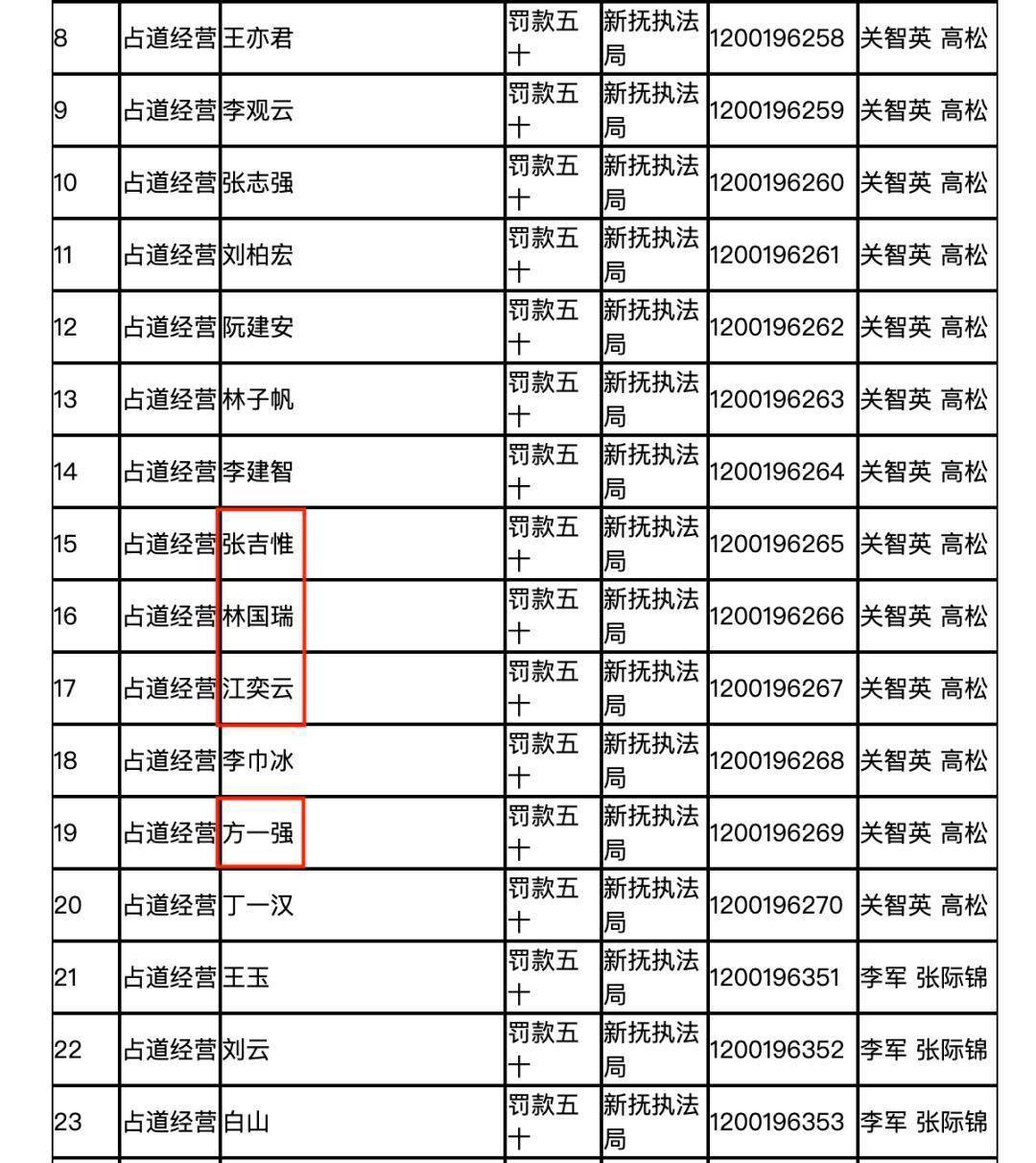 一份发布于2022年5月25日的辽宁省抚顺市新抚区公法局行政处罚肤浅标准公示中,相通出现“张吉惟、林国瑞”等名字。 图源:抚顺市新抚区东说念主民政府网站